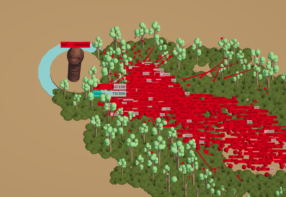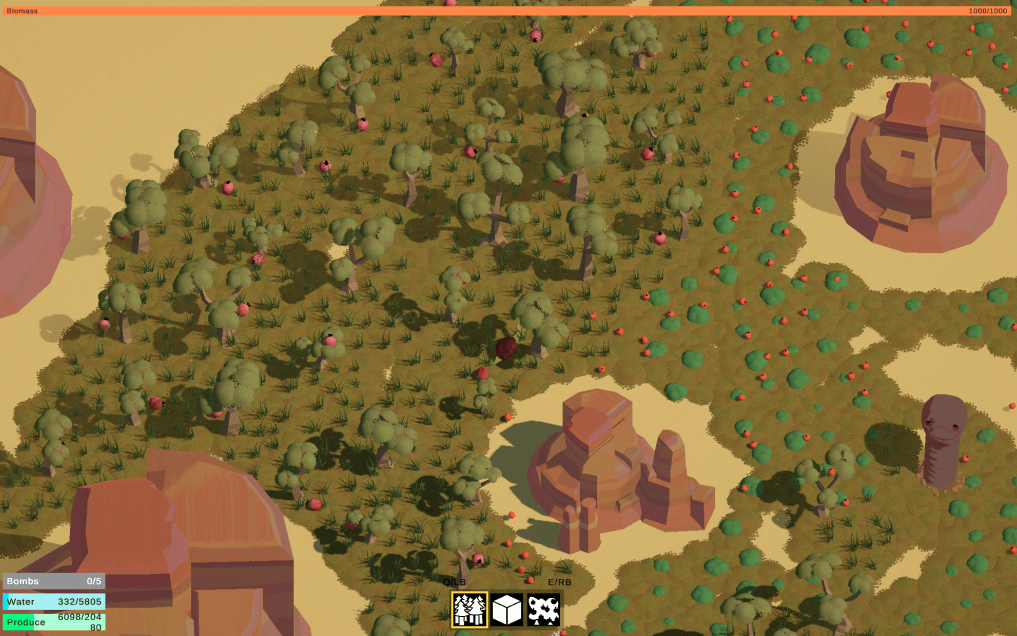 Once we added fruit mechanic (trees produce stuff) we started to pivot more towards an incremental game as it felt really good to collect them. The switch was a good choice, incremental genre works really well with the growing mechanic we’ve made, and it feels really juicy to see thousands of objects appear and get collected by the player.